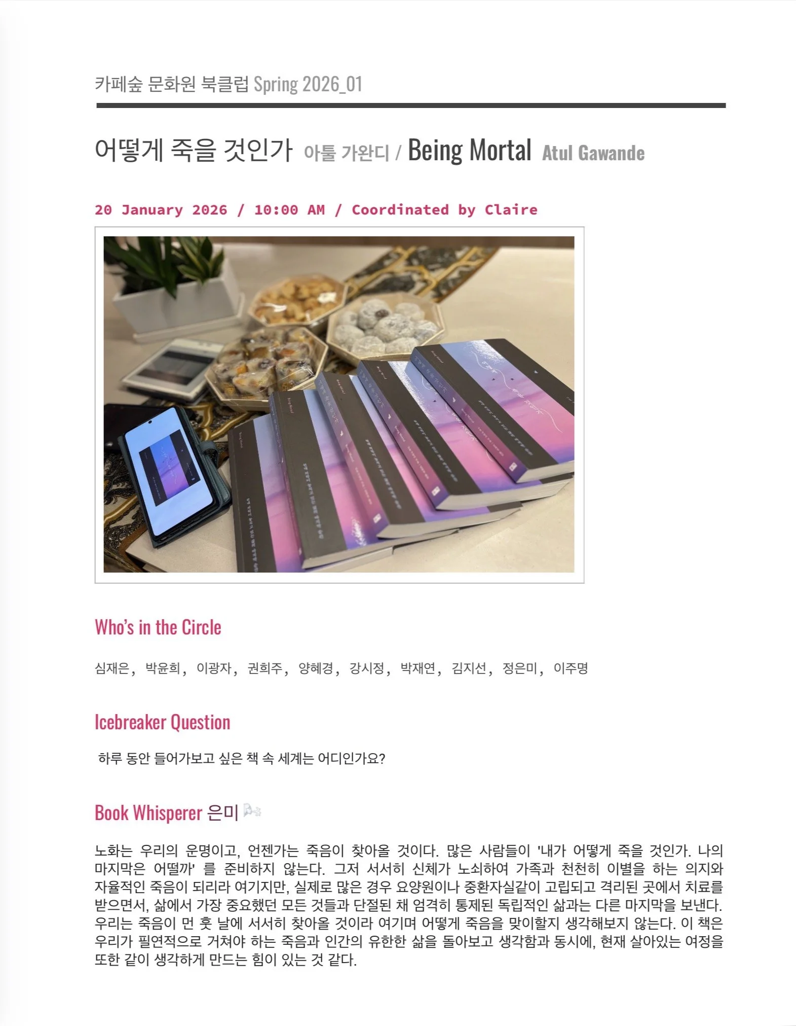 숲문화원 북클럽 2026년 1월 미팅 노트_아툴 가완디, 어떻게 죽을 것인가