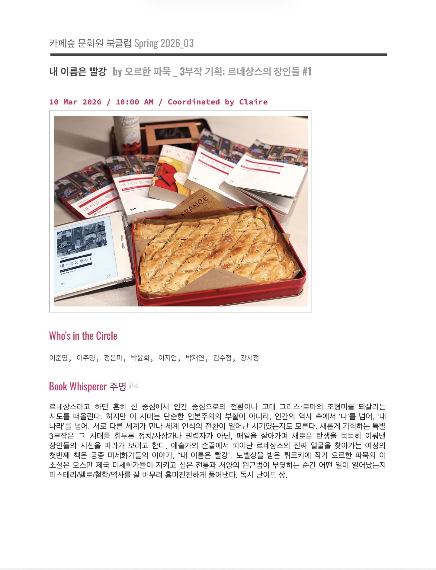 숲문화원 북클럽 2026년 3월 미팅 노트_오르한 파묵, 내 이름은 빨강